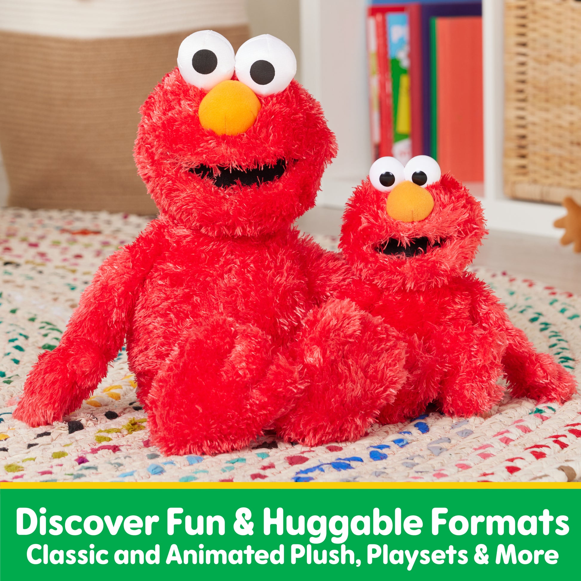 After years of love and hugs, Elmo can finally hug your little one back! This innovative new plush toy brings tender squeezes to playtime in a whole new way, featuring extra-long arms and a fun play pattern. Elmo has a 14” body with short, floppy, legs that dangle. This Elmo plush features all-around softness and his signature shaggy, bright red plush with embroidered details for his irresistibly cute expression. Best of all, press on Elmo’s tummy for a surprise – he opens his extra-long arms to hug you back! This innovative toy was also made thoughtfully, with the whole family in mind: with only minimal pressure needed to press Elmo’s tummy, everyone can play comfortably and easily, from siblings all the way to grandma!
