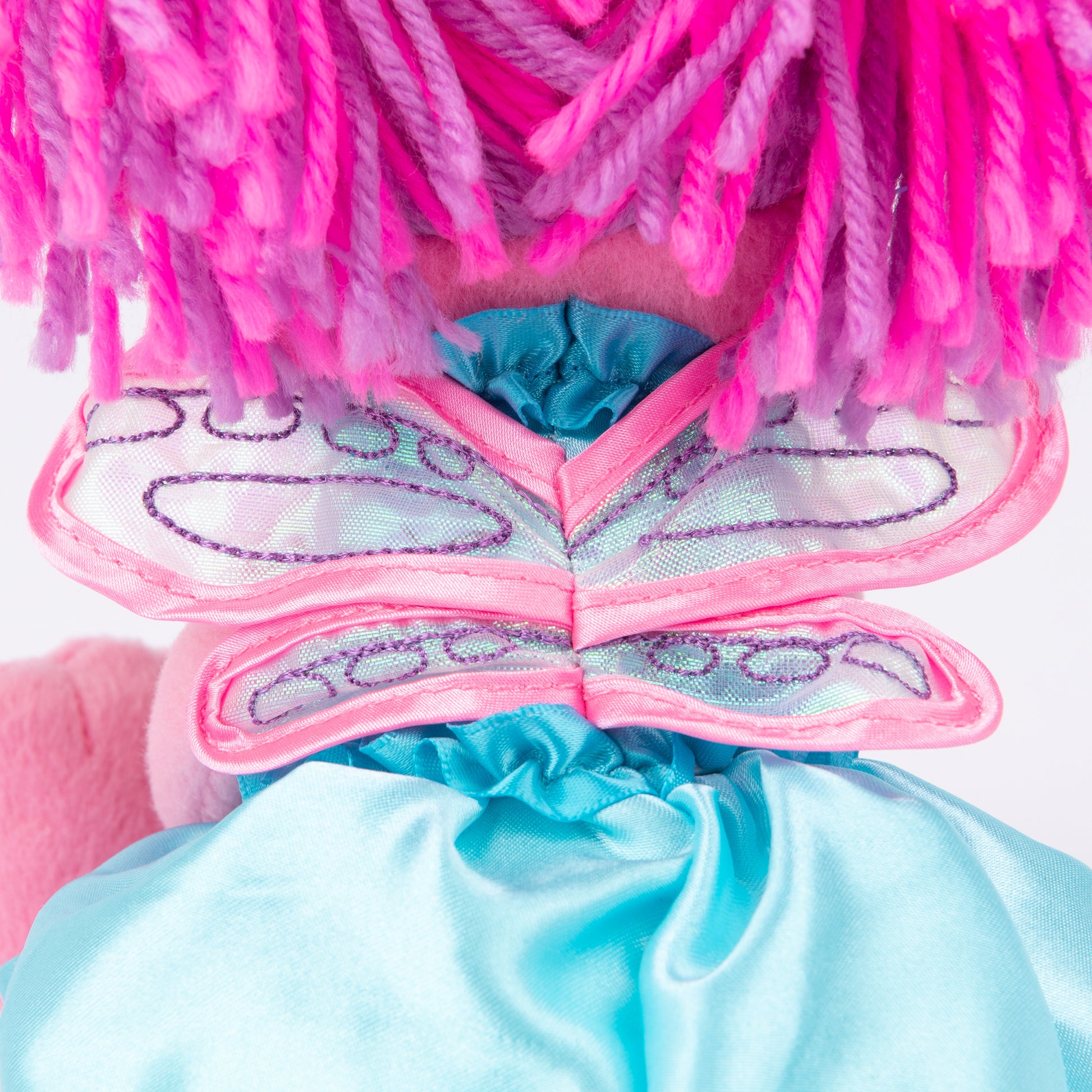 That’s so magic! Abby Cadabby is here as a cuddly 11” plush, ready to make every playdate a more magical experience! Since her debut in 2006, Abby is the whimsical fairy resident of Sesame Street who can pop in and out of thin air and shares her magic with friends by turning objects into pumpkins and floating when she’s happy. Now she’s here to join your collection of plushies! This adorable plush features Abby with sheer iridescent wings and signature sky-blue satiny dress, holding a yellow flower with a cheerful smile. She also features soft pink plush and her bright pink and purple hair in pigtails, with embroidered facial details and a soft, huggable body that makes her perfect for all ages 1 and up. This plush toy is surface-washable for easy cleaning and ships in a protective poly bag.