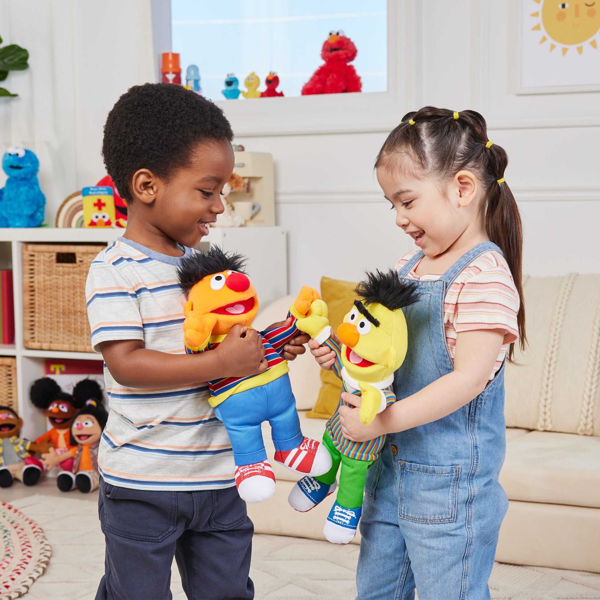 Bert, Ernie’s best friend, is here as a cuddly 14” plush! Unlike the extroverted and excitable Ernie, Bert is known for his more serious, studious nature and not-so-exciting hobbies. Together, the two make an unbeatable pair and have been Sesame Street fan favorites since the 1970s. Now they’re both here to join your plush collection! This adorable plush features Bert in his signature striped shirt and green pants, with his distinct unibrow, soft yellow plush and a friendly smile. Bert also has a soft, huggable body that makes him perfect for all ages 1 and up. This plush toy is surface-washable for easy cleaning and ships in a protective poly bag.