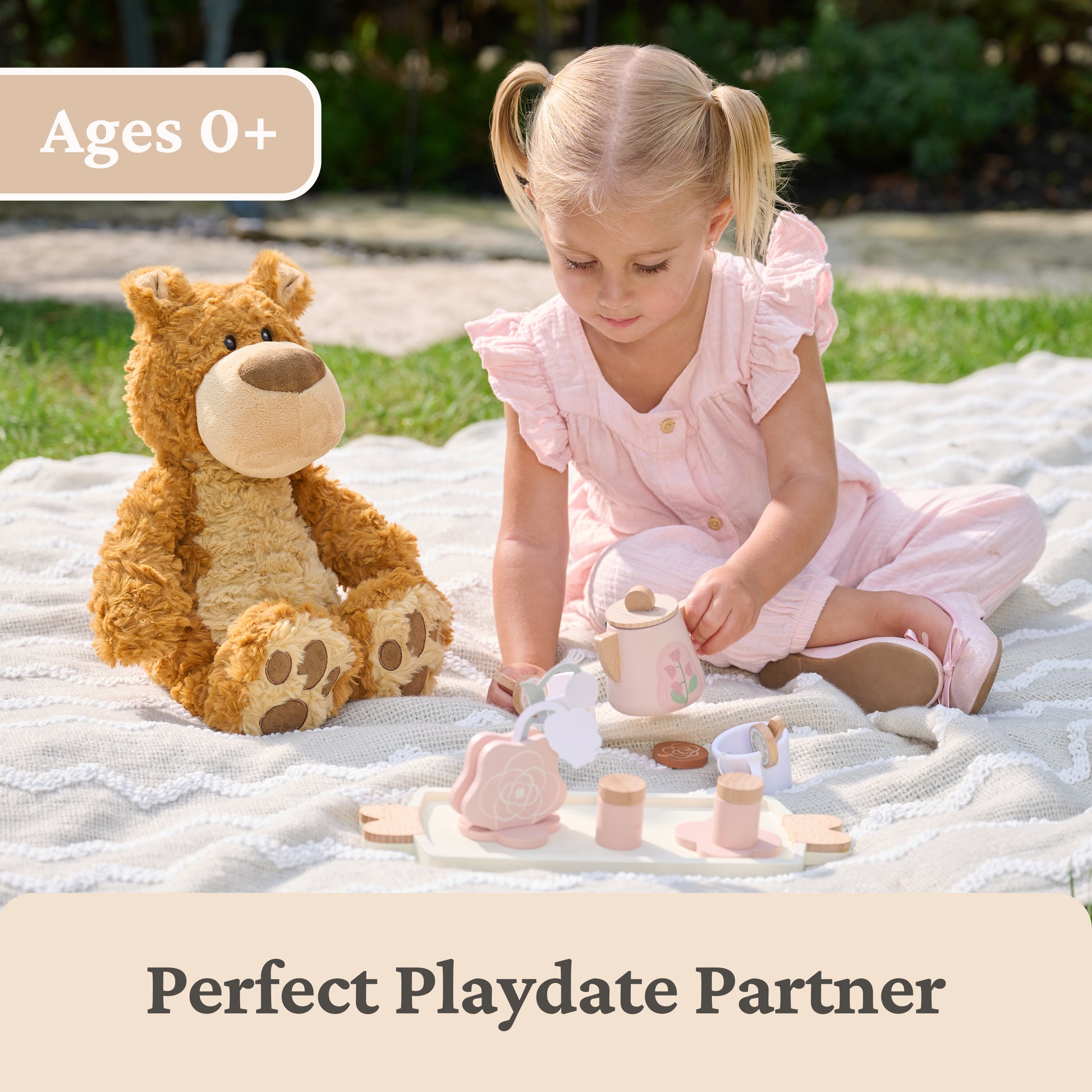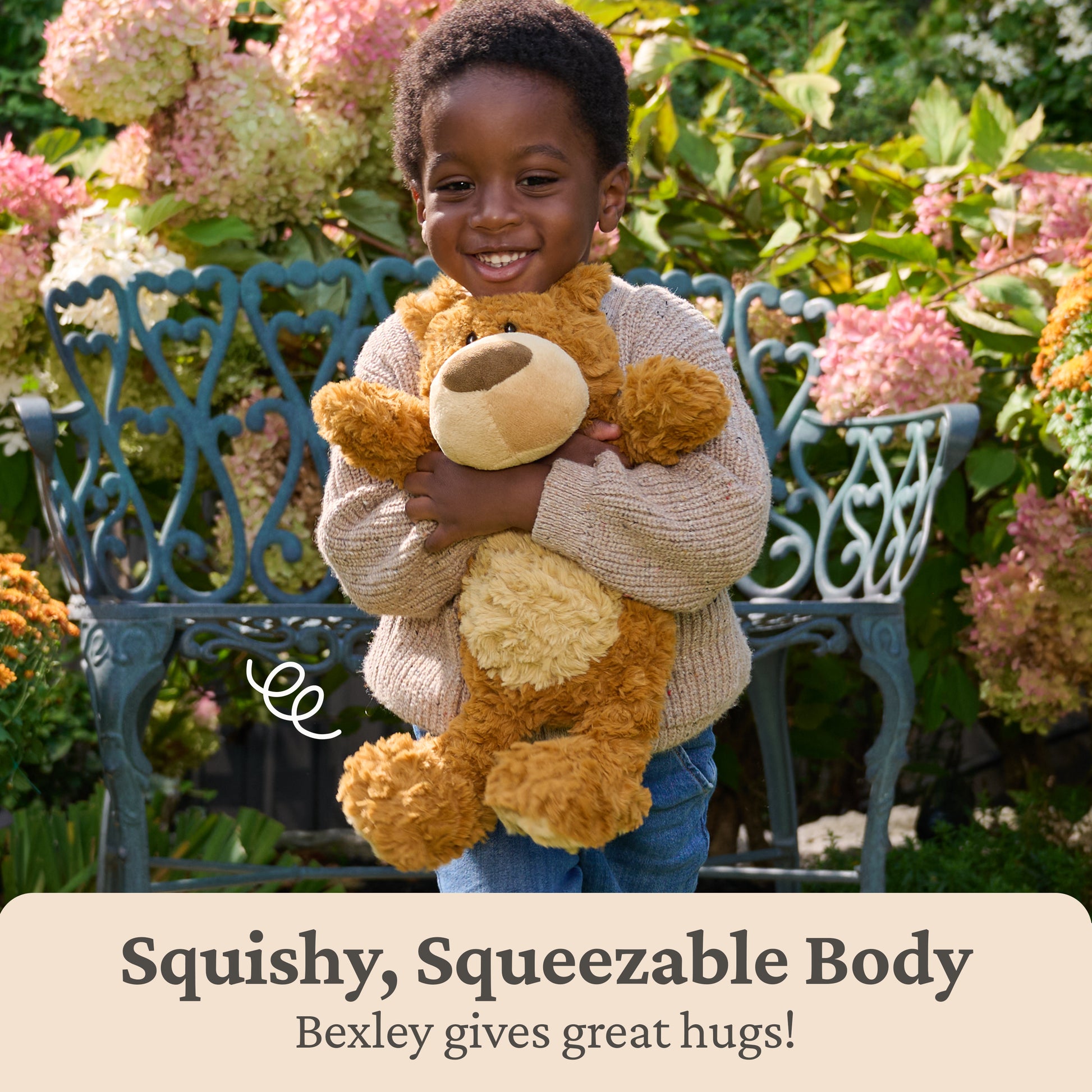 Bexley is a sweet, clever bear that loves a good story and snuggle under a cozy blanket. This imaginative pal is always thinking of new games and ways to play, sharing his latest dreams and stories with friends to make them smile. This adorable 12” seated bear features amber swirls of tousled plush, a tan tummy, a chestnut faux-suede nose, small, mousy ears, and extra-large paws with faux suede paw pads. He sits upright looking eager and curious, weighted with pellets to keep balanced upright and display-ready. His big paws are also weighted, so this sweetie’s always ready to cuddle or pose! This bear makes a thoughtful gift for plushie collectors, kids, and animal lovers of all ages. Like all of our teddy bears, Bexley is surface-washable and appropriate for ages 1 and up. Do not machine-wash or use harsh chemical cleaners. Ships in a protective poly bag.