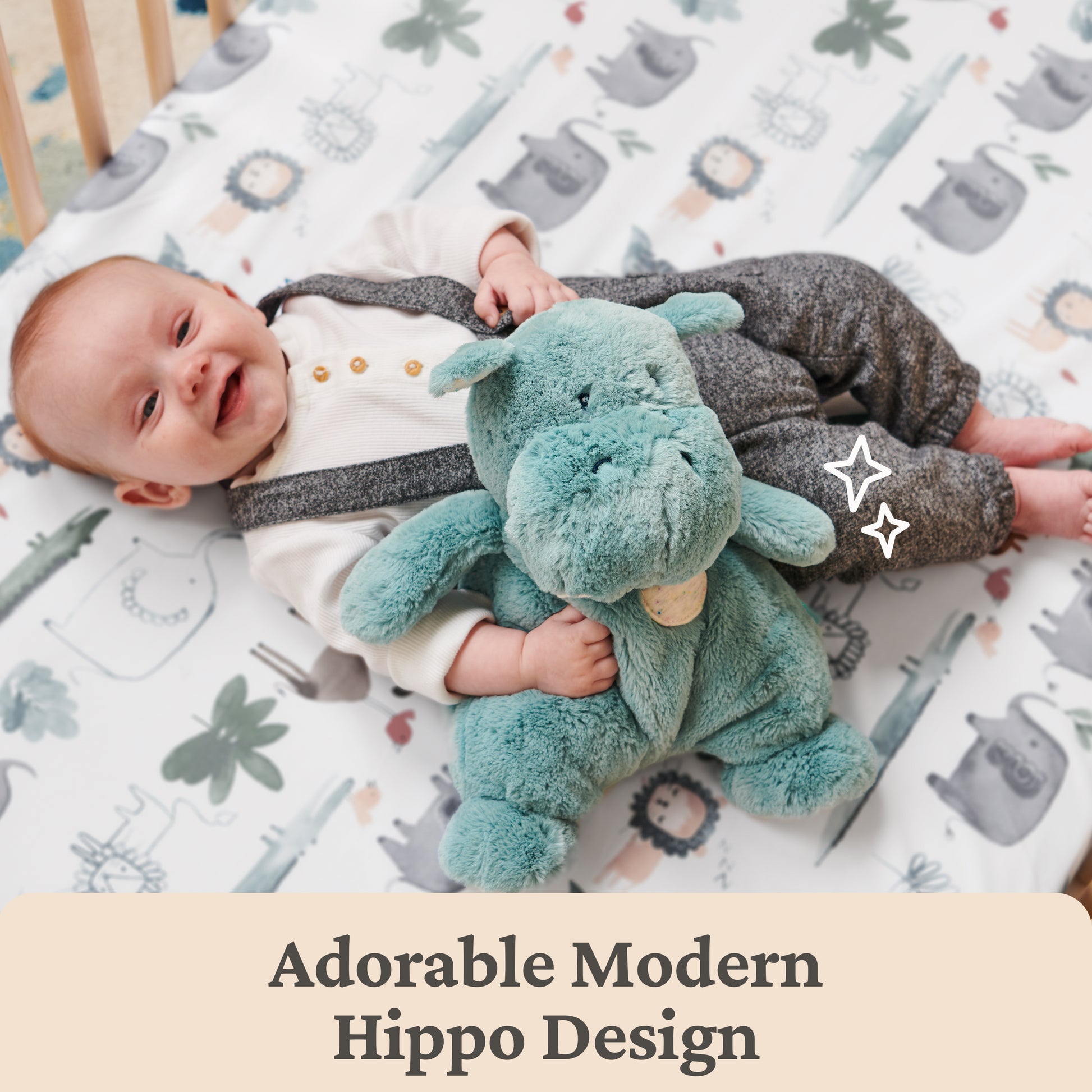 The Oh So Snuggly Collection by Baby GUND combines two of baby’s favorites: a super-soft plush friend and a quilted security blanket, all in one plush toy that comforts and supports tactile play! The Oh So Snuggly Hippo is a super-soft, modern take on a classic plush hippopotamus with a blue-green aquamarine color that adds a pop of color to complement a wide range of modern nursery décor styles. This adorable 12.5” plush hippo also features baby-safe embroidered facial details and quilted accents in its ears, on its feet and body with a jersey texture made to feel just like a soft, comforting companion with security blanket softness. All animals in the Oh So Snuggly plush collection are machine washable for easy, convenient cleaning and appropriate for all ages, from newborns aged 0 and up.