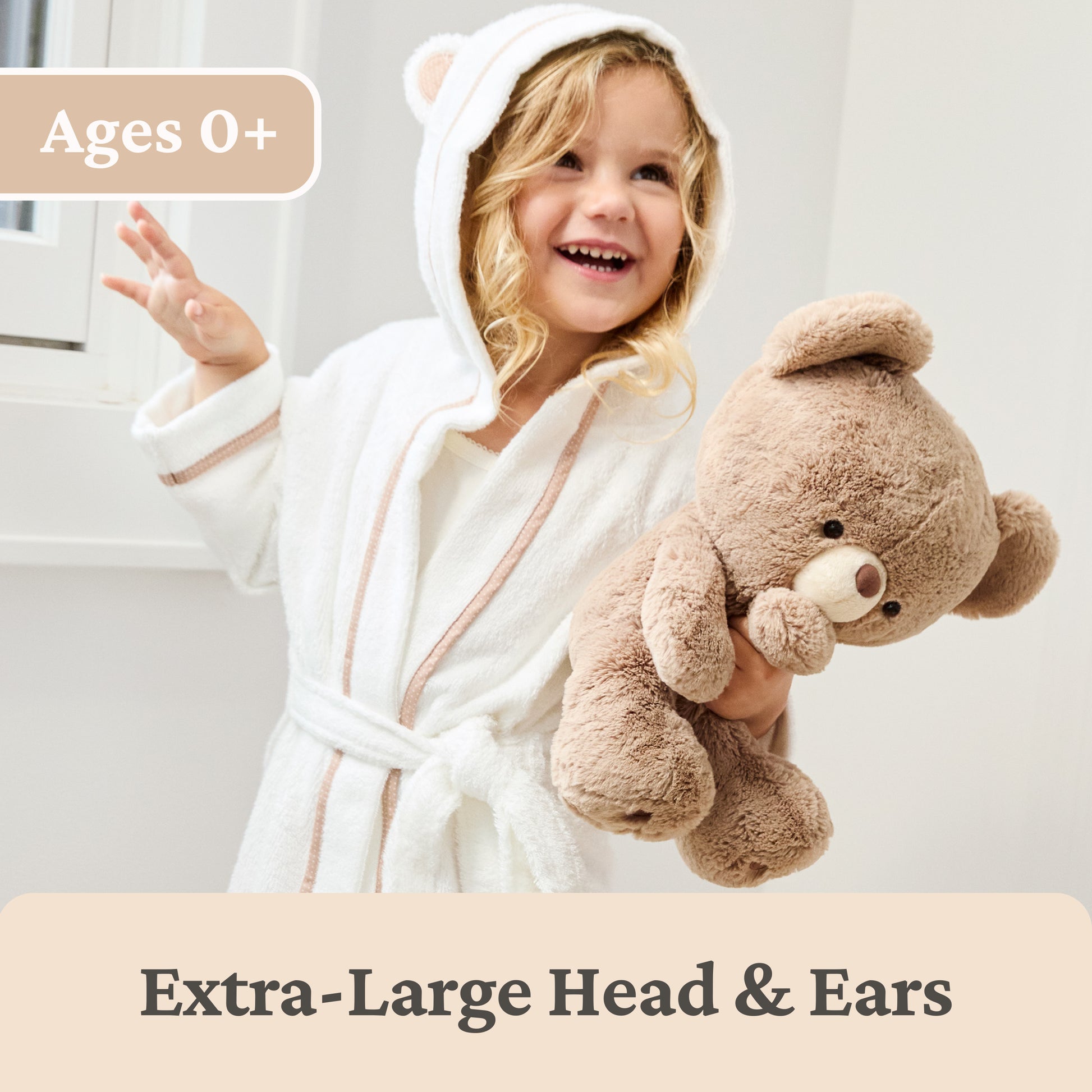 With a head full of dreams and a heart full of wonder, Kai’s imagination is as big as its heart! This taupe teddy bear has soft plush and a cute modern style with an adorably oversized head, little body, embroidered paw pads, and a faux suede nose. With a sweet round muzzle and an inquisitive look in its their eyes, Kai's wonderful for tagging along on playtime adventures, or just melting into your arms with every hug.