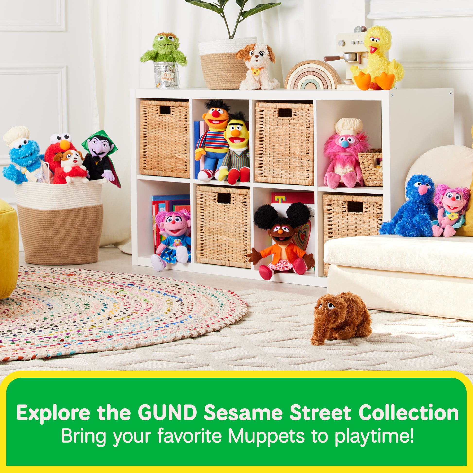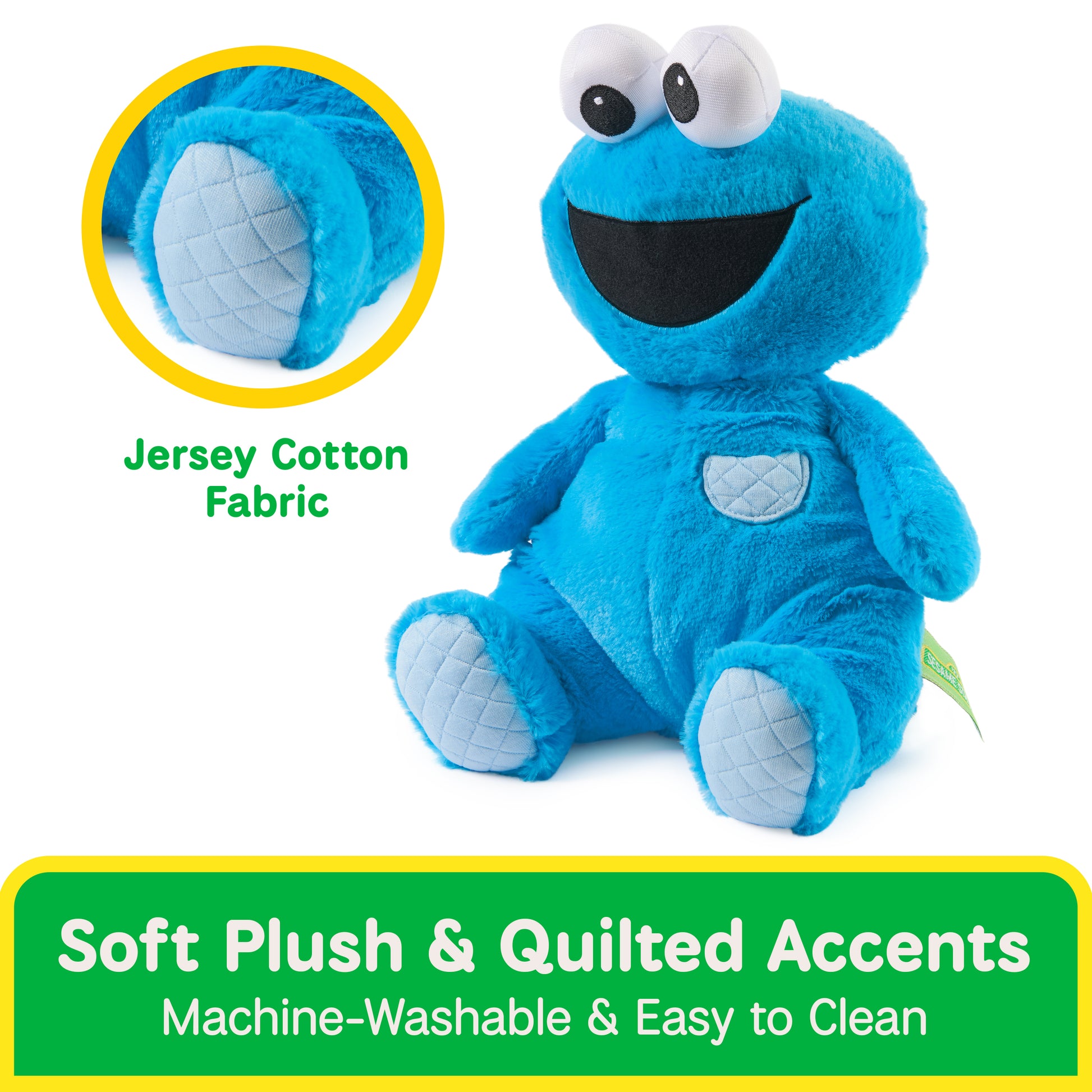 Snuggle up with Elmo and Cookie Monster! These Sesame Street stars have joined the playdate in our signature GUND Oh So Snuggly format, with floppy, modern silhouettes that keep playtime tactile for little ones. This soft Sesame Street plush toy features authentic character details as seen in the show. Cookie Monster has a huggably squishy, understuffed body and soft, bright blue plush. Cookie Monster is designed with all-around softness made for little ones to love and cuddle endlessly, including his embroidered facial details and soft eyes. Cookie Monster also features soft quilted patterns on his feet and pocket for extra tactile play. Cookie Monster’s iconic googly-eyed smile will keep them giggling and excited to play with their favorite furry monster! These plushies make thoughtful, timeless gifts for Sesame Street fans of all ages, both as décor and in teaching little ones to act out their own imaginative play adventures at home. Meet all of the snuggly Sesame Street pals and complete your collection!