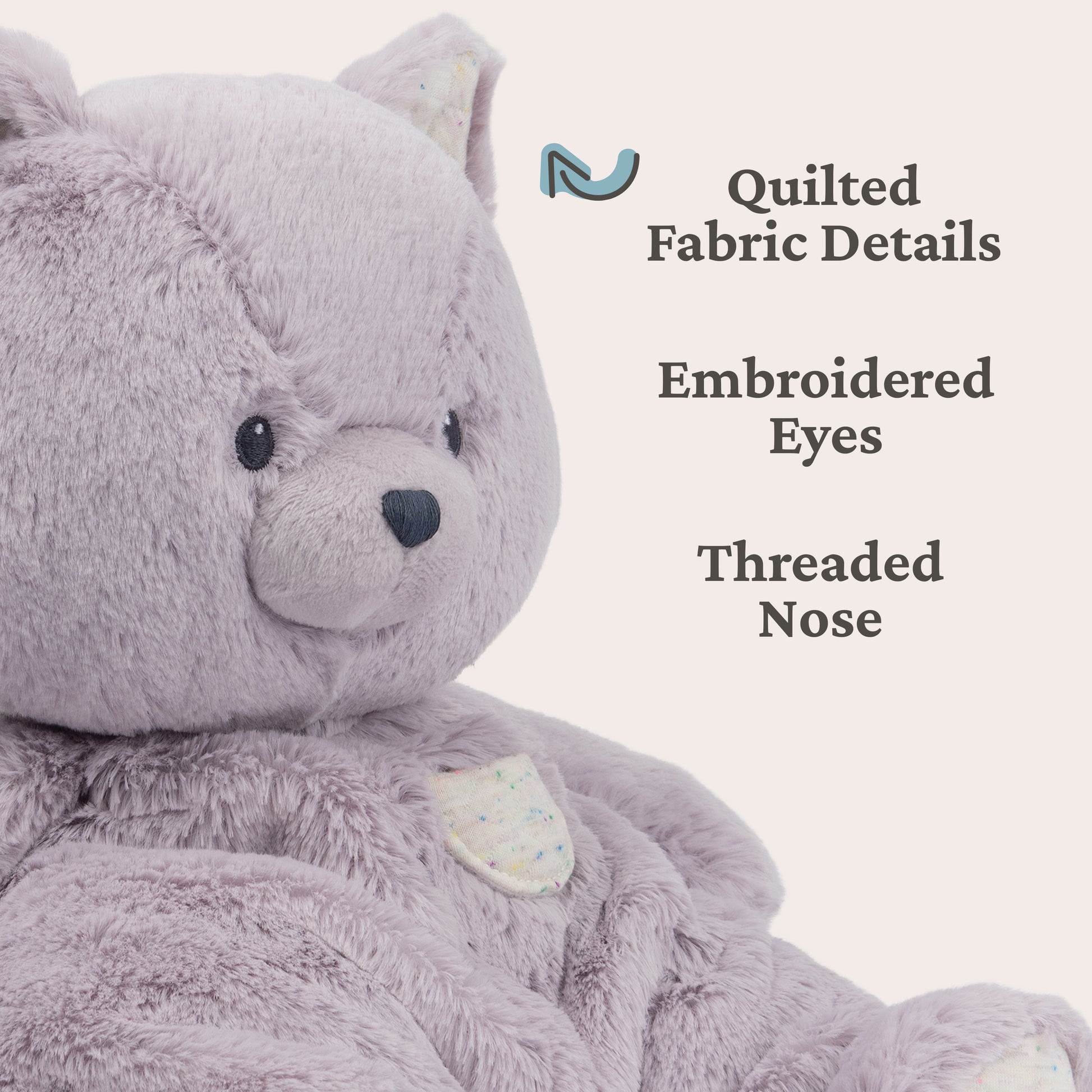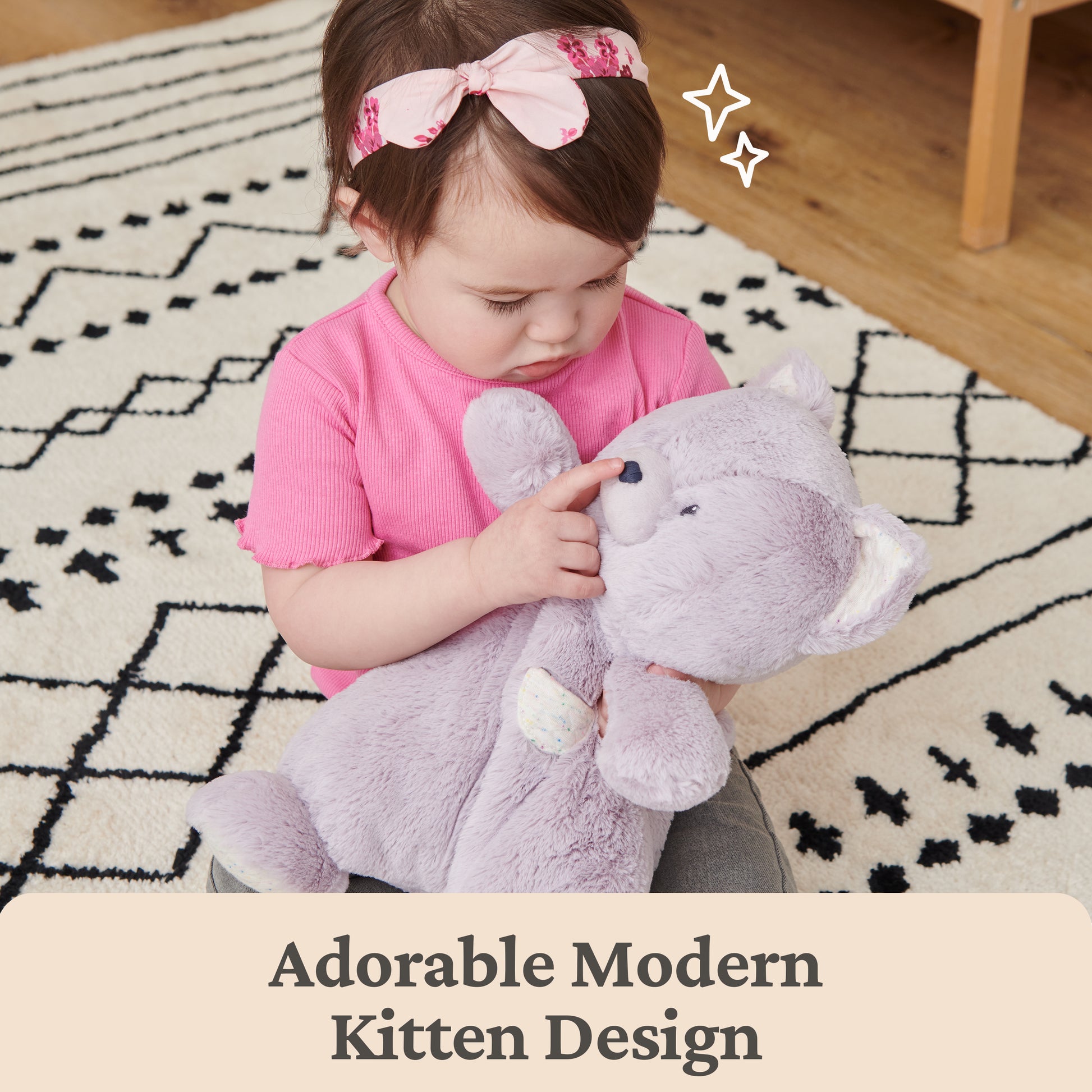 The Oh So Snuggly Collection by Baby GUND combines two of baby’s favorites: a super-soft plush friend and a quilted security blanket, all in one plush toy that comforts and supports tactile play! The Oh So Snuggly Kitten is a super-soft, modern take on a classic plush kitty cat, designed with a light lavender purple color that complements a wide range of modern nursery décor styles. This adorable 12.5” plush kitten also features baby-safe embroidered facial details and quilted accents in its ears, on its feet and body with a jersey texture made to feel just like a soft, comforting companion with security blanket softness. All animals in the Oh So Snuggly plush collection are machine washable for easy, convenient cleaning and appropriate for all ages, from newborns aged 0 and up.