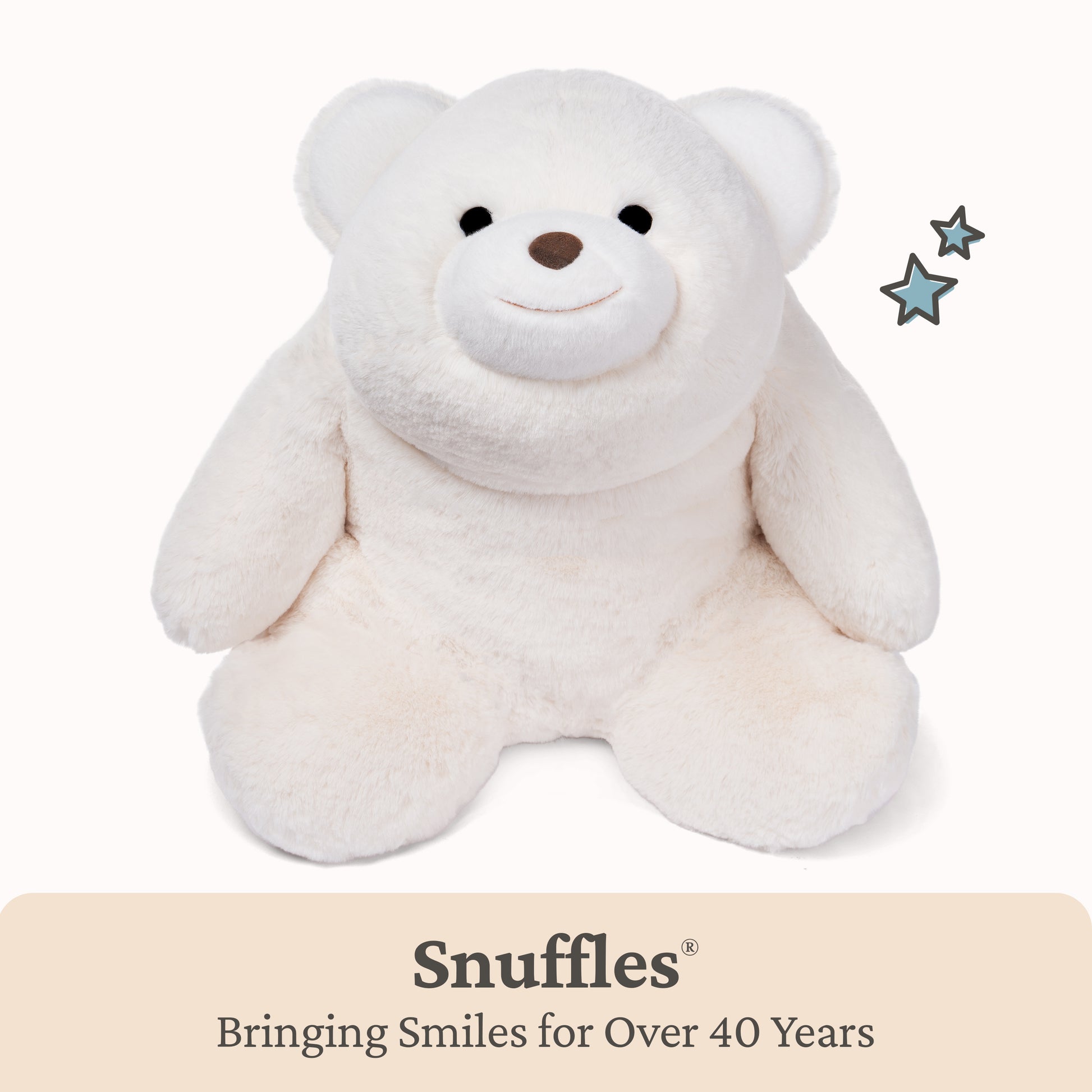 Snuffles® has been spreading joy as one of our most beloved teddy bears for over 40 years! This jumbo Snuffles has super-soft classic white plush that feels like snuggling a cloud in a larger 18-inch size! Snuffles features a unique crescent design that lets him look into your eyes with every hug. Snuffles is surface-washable for easy cleaning and appropriate for ages 1 and up.