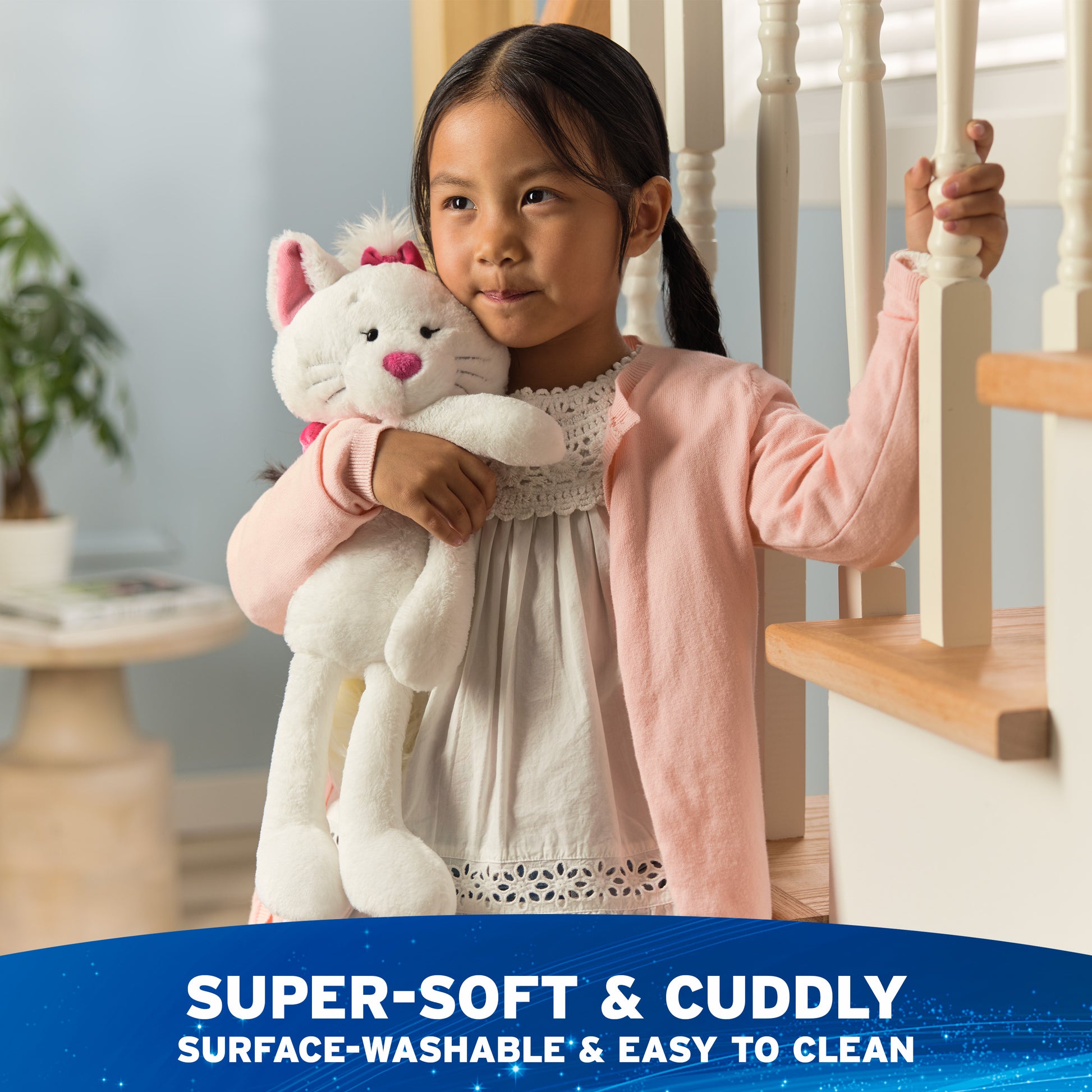 Bring the poise to playtime with Disney’s Marie! The curious, sarcastic, and sassy star of The Aristocats makes her way to playtime as a beautifully crafted plush. This soft Marie kitten plush features authentic character details from The Aristocats, including her white fur and the giant pink velvet bow tied around her neck. Marie also has delicate silver facial embroidery that is complemented by a hot pink nose and a dainty bright pink bow on top of her head, which holds a tuft of white plush just like in the movie. Both her ears and paw pads feature soft bubblegum-pink plush and bring a pop of color to this fluffy, sophisticated cat. Marie makes a thoughtful, timeless gift for fans of all ages, both as bedroom décor and to inspire little ones to act out their own imaginative play adventures.