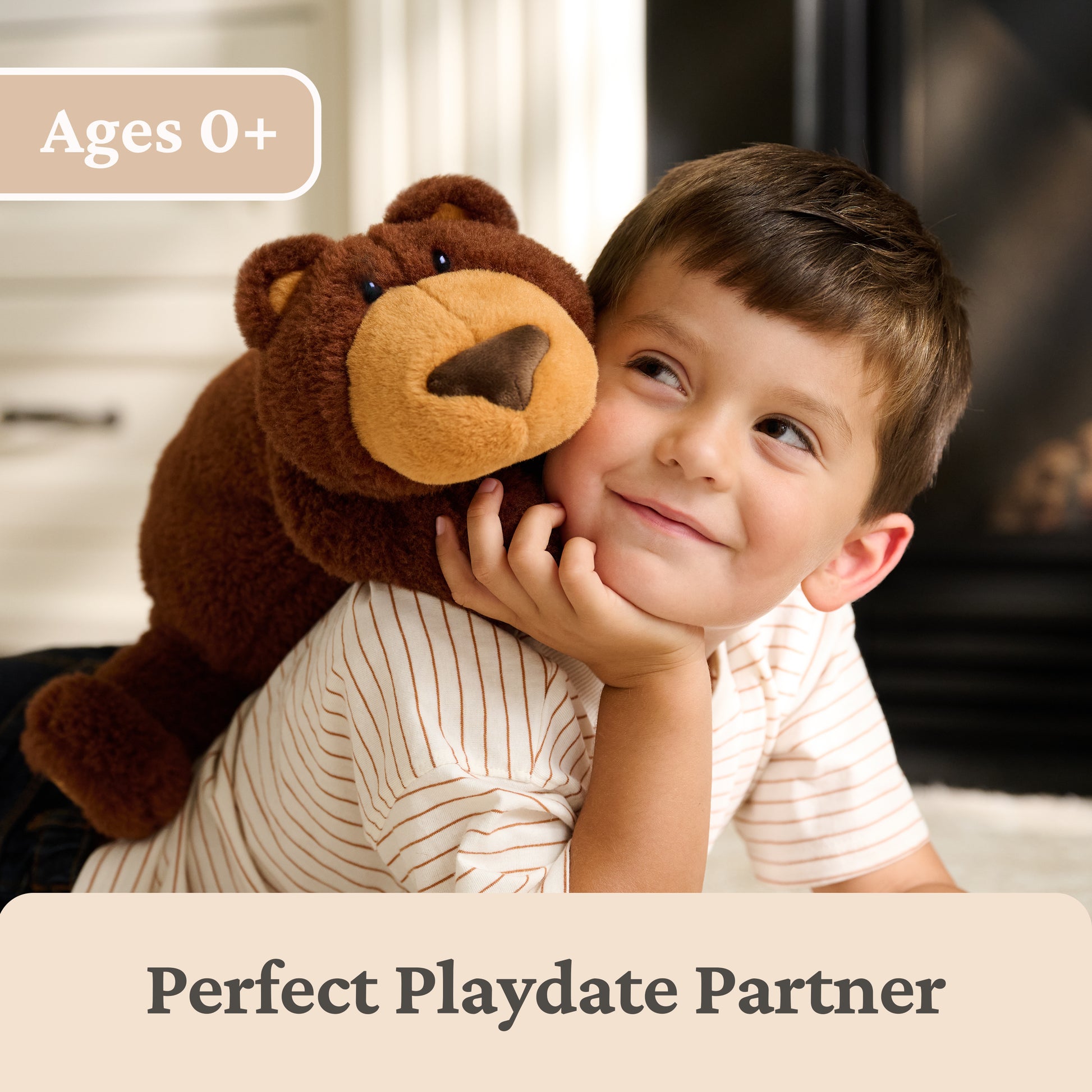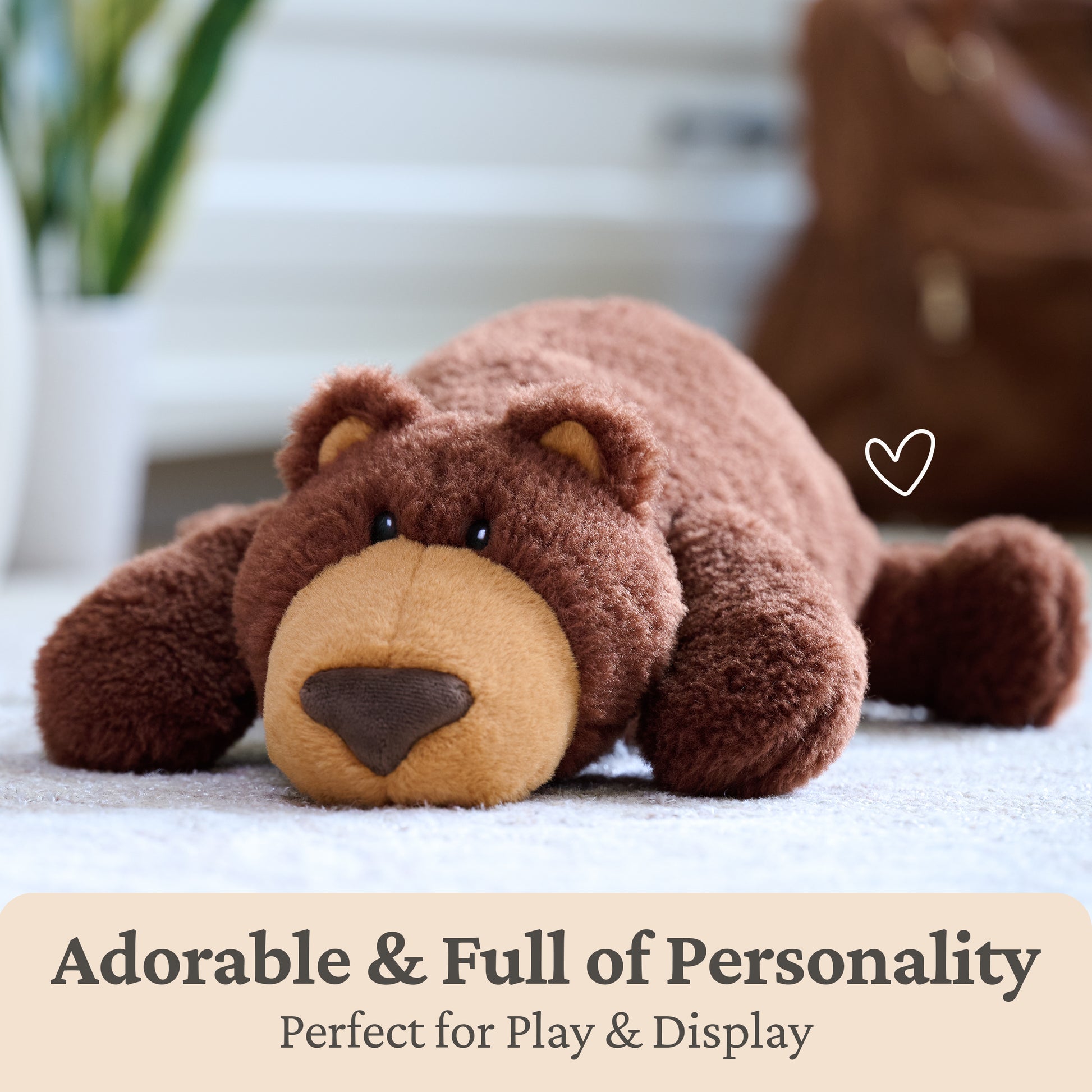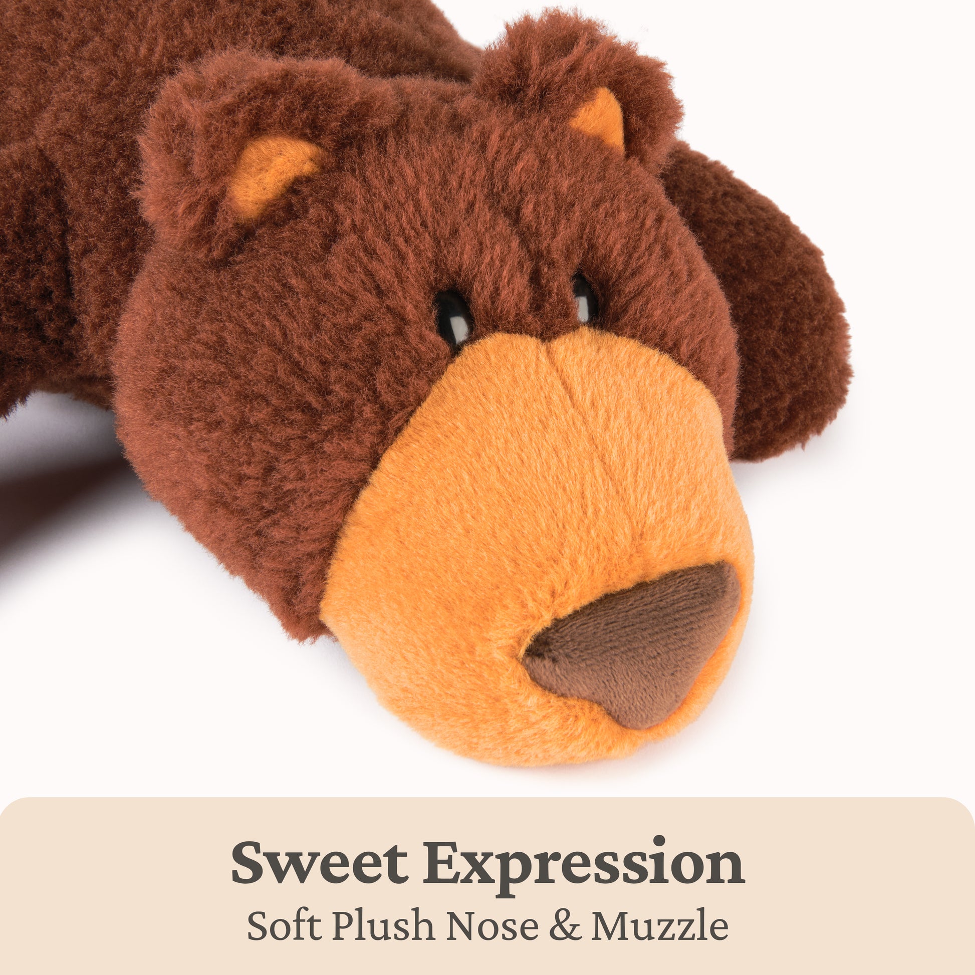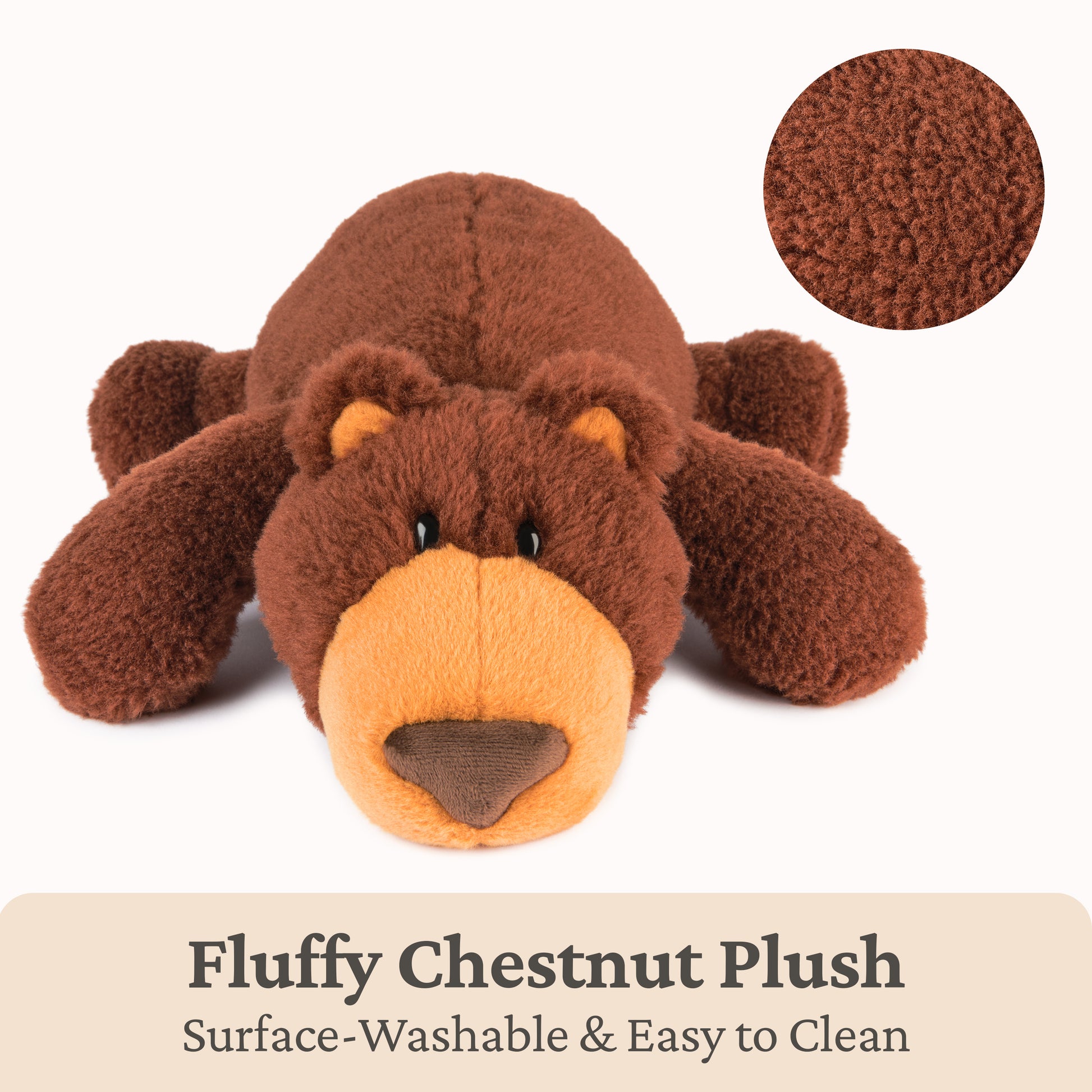 Tush is a fluffy friend that’s always ready for fun – or a nice, long snooze! This adorable 15” bear features fluffy chestnut-brown plush with amber accents on his muzzle, short ears, and paw pads. Naturally, Tush poses in a relaxed downward snoozing pose, ready to flop in your lap for a short hibernation or to display proudly in any collection. Tush also makes a thoughtful gift for plushie collectors, kids, and animal lovers of all ages. Like all of our teddy bears, Tush is surface-washable and appropriate for ages 1 and up. Do not machine-wash or use harsh chemical cleaners.
