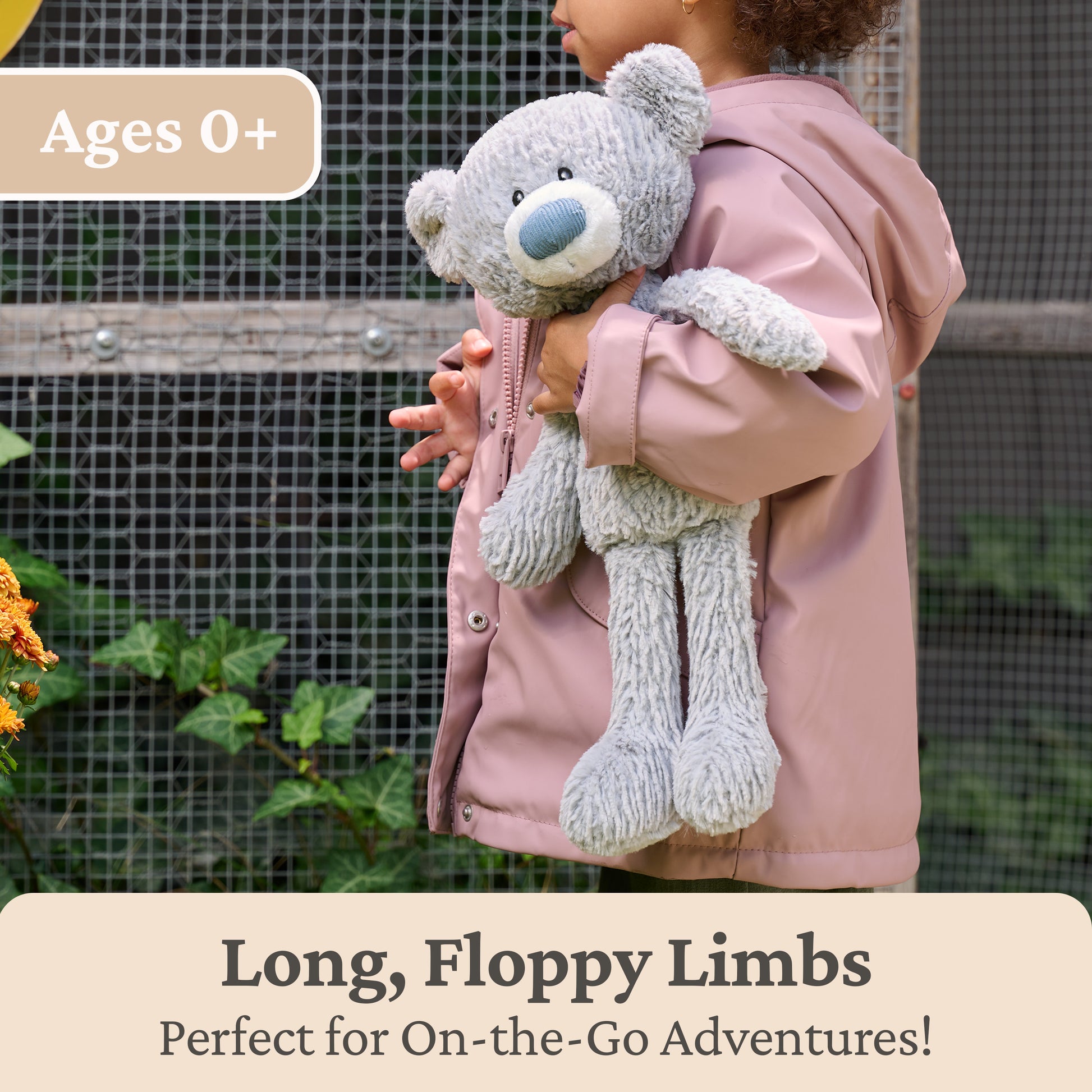 Wavy loves nothing more than a good puzzle or game… any excuse for a snuggle with you! As our newest addition to the Toothpick collection, this charming 15” smoky-grey bear has light blue-grey hues and the same soft blue corduroy nose and plush muzzle the original Toothpick is known for. These special bears and GUND Take-Along Friends have slender structured bodies with oversized, playfully floppy limbs that allow them to pose in any collection or act as adorable and eye-catching room décor.